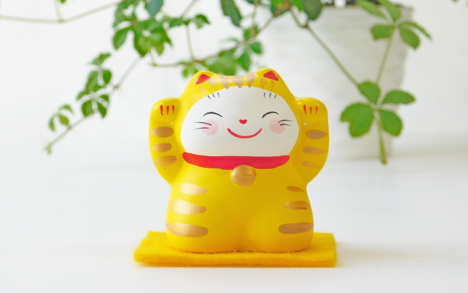 金運を招く黄色の金運猫や、上を向いて運勢を招く猫、誕生日プレゼントに人気の